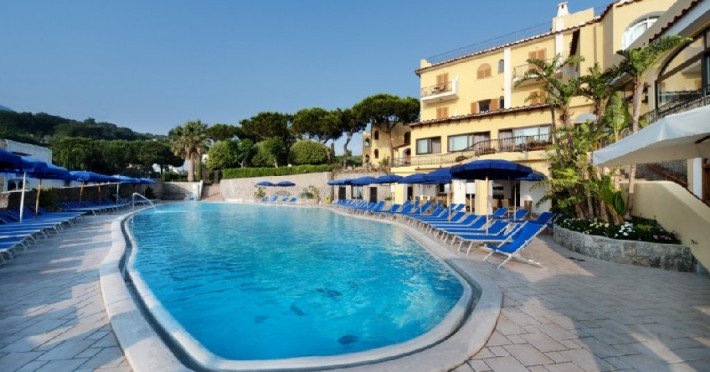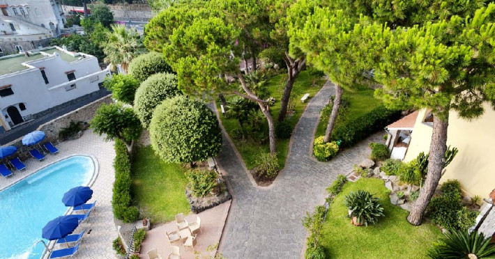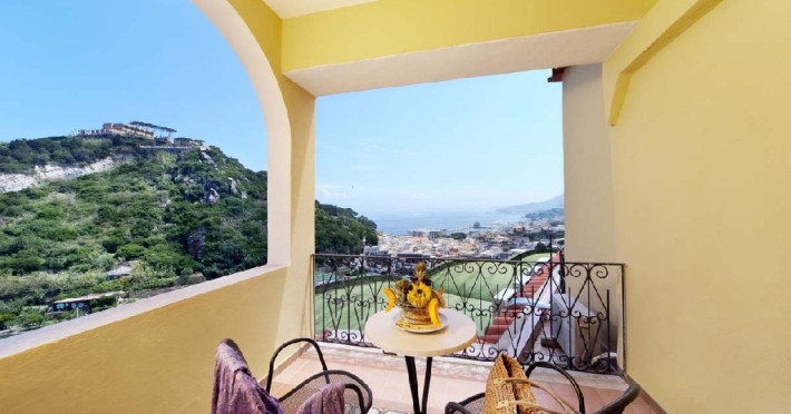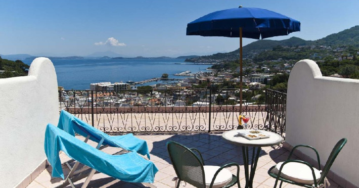 Fiind situata pe un deal verde cu vedere la Lacco Ameno - perla insulei, ofera posibilitatea oaspetilor de a se bucura cat mai mult timp de lumina soarelui.