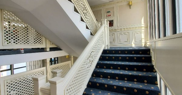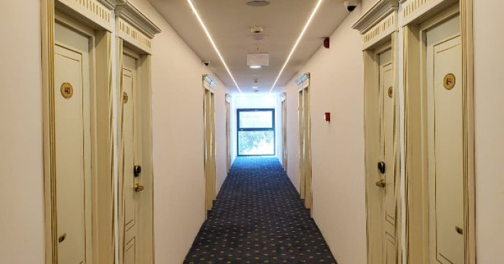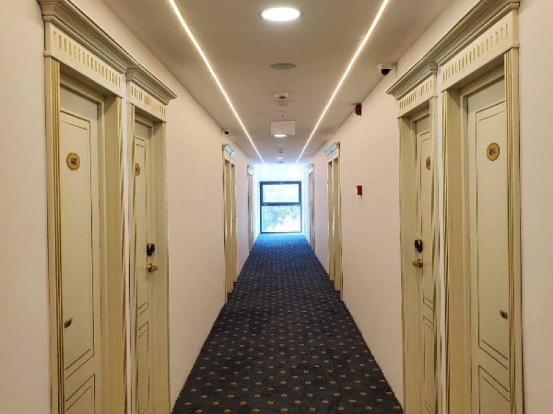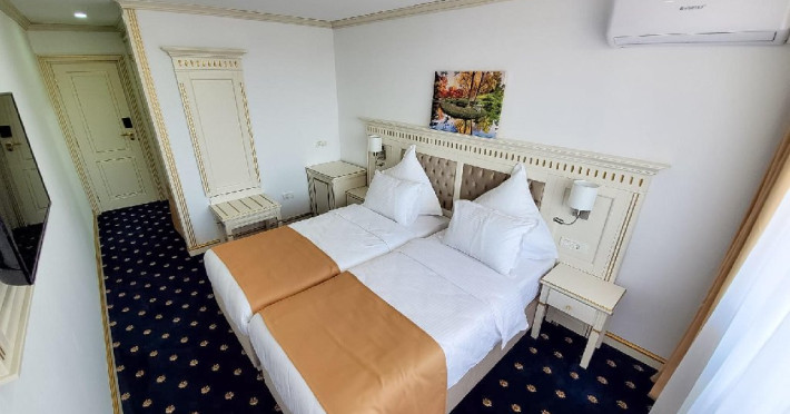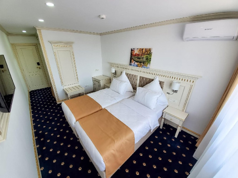 Structurat pe 6 nivele , dispune de 7 apartamente de lux si 300 de camere duble, deservite de 2 lifturi si parcare proprie.
