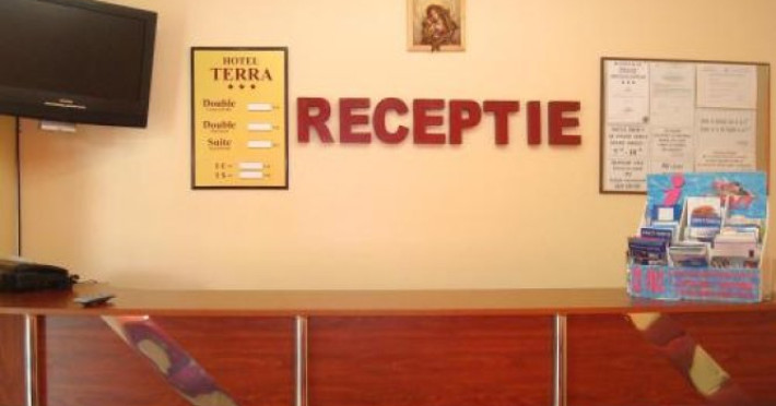 Your vacation should be comfortable! Hotel Hotel Terra is located in Neptun. This hotel is located nearby from the city center. You can take a walk and explore the neighbourhood area of the hotel. Places nearby: Jupiter Beach and St. Georges Church.Your vacation should be comfortable! Hotel Hotel Terra is located in Neptun. This hotel is located nearby from the city center. You can take a walk and explore the neighbourhood area of the hotel. Places nearby: Jupiter Beach and St. Georges Church.Taste the local cuisine and have a rest in the restaurant. Free Wi-Fi on the territory will help you to stay on-line. Specially for tourists who travel by car, theres a free parking zone. Swimming fans are going to enjoy an outdoor pool.Accessible for guests with disabilities: the elevator helps them to go to the highest floors. Additional services that the hotel offers to its guests: a safe-deposit box and a concierge.Taste the local cuisine and have a rest in the restaurant. Free Wi-Fi on the territory will help you to stay on-line. Specially for tourists who travel by car, theres a free parking zone. Swimming fans are going to enjoy an outdoor pool.Accessible for guests with disabilities: the elevator helps them to go to the highest floors. Additional services that the hotel offers to its guests: a safe-deposit box and a concierge..1 RON not included 50 per guest per nightDatorita dinamicitatii domeniului disponibilitatea ofertelor se modifica de la un moment la altul. De aceea ofertele sunt valabile in limita locurilor disponibile. Agentia nu este responsabila pentru eventualele neconcordante care pot aparea intre informatiile privind tarifele si alte detalii din site si informatiile primite in agentie. In aceste cazuri vor avea prioritate, intotdeauna, informatiile primite in agentie.