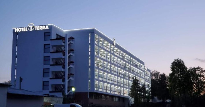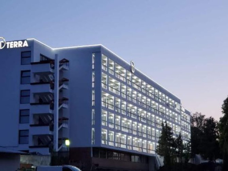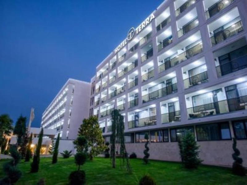 Pozitionat in centrul statiunii Neptun, la doar 200 metri de Gara Neptun si 800 metri de plaja, Hotel Terra este alegerea ideala pentru o vacanta relaxanta la malul Marii Negre. Hotel Terra este amplasat in imediata apropiere a parcului natural Paradise Land â cel mai mare complex de aventura de pe litoralul romanesc. Renovat complet in 2020, Hotel Terra isi asteapta oaspetii cu 300 de camere duble si 7 apartamente elegante, mobilate cu gust. Toate camerele Hotel Terra dispun de aer conditionat, minibar, seif, telefon, televizor cu ecran plat, canale TV prin cablu si bai proprii cu dus si uscator de par. Camerele de la etajele superioare au si balcon care ofera imagini impresionante ale Marii Negre. Hotelul are camere duble, unde se pot caza 2 adulti si 2 copii - pana in 14 ani (1 copil in pat cu parintii, unul in pat suplimentar pliabil), 2 adulti si 1 copil sau 3 adulti (cu pat suplimentar pliabil). Spatiul ramas disponibil in camera dupa instalarea patului suplimentar este foarte mic. Internet wireless de mare viteza este disponibil gratuit in camere si in toate spatiile publice ale Hotel Terra. Hotel Terra pune la dispozitia oaspetilor sai un restaurant a la carte, un bar de zi, terase exterioare, o piscina exterioara potrivita si pentru adulti si pentru copii, un loc de joaca pentru copii frumos amenajat si multe spatii de relaxare. Oaspetii Hotel Terra beneficiaza de parcarea hotelului gratuit.Datorita dinamicitatii domeniului disponibilitatea ofertelor se modifica de la un moment la altul. De aceea ofertele sunt valabile in limita locurilor disponibile. Agentia nu este responsabila pentru eventualele neconcordante care pot aparea intre informatiile privind tarifele si alte detalii din site si informatiile primite in agentie. In aceste cazuri vor avea prioritate, intotdeauna, informatiile primite in agentie.