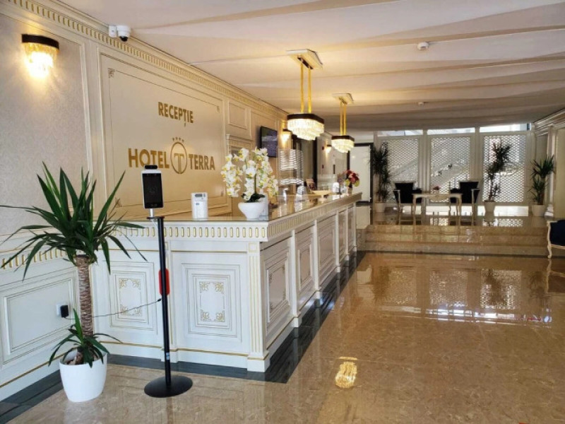 Want to take a rest and explore the city? Hotel Hotel Terra is located in Neptun. This hotel is located 1 km from the city center. You can take a walk and explore the neighbourhood area of the hotel Jupiter Beach and St. Georges Church.Want to take a rest and explore the city? Hotel Hotel Terra is located in Neptun. This hotel is located 1 km from the city center. You can take a walk and explore the neighbourhood area of the hotel Jupiter Beach and St. Georges Church.Taste the local cuisine and have a rest in the restaurant. Want to be always on-line? Wi-Fi is available. If you travel by car, theres a free parking zone. Swimming fans are going to enjoy an outdoor pool.Accessible for guests with disabilities: the elevator helps them to go to the highest floors. There are other services available for the guests of the hotel. For example, a safe-deposit box and a concierge.Taste the local cuisine and have a rest in the restaurant. Want to be always on-line? Wi-Fi is available. If you travel by car, theres a free parking zone. Swimming fans are going to enjoy an outdoor pool.Accessible for guests with disabilities: the elevator helps them to go to the highest floors. There are other services available for the guests of the hotel. For example, a safe-deposit box and a concierge..1 RON not included 50 per guest per nightDatorita dinamicitatii domeniului disponibilitatea ofertelor se modifica de la un moment la altul. De aceea ofertele sunt valabile in limita locurilor disponibile. Agentia nu este responsabila pentru eventualele neconcordante care pot aparea intre informatiile privind tarifele si alte detalii din site si informatiile primite in agentie. In aceste cazuri vor avea prioritate, intotdeauna, informatiile primite in agentie.
