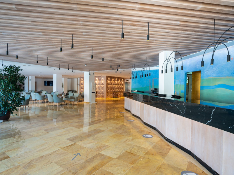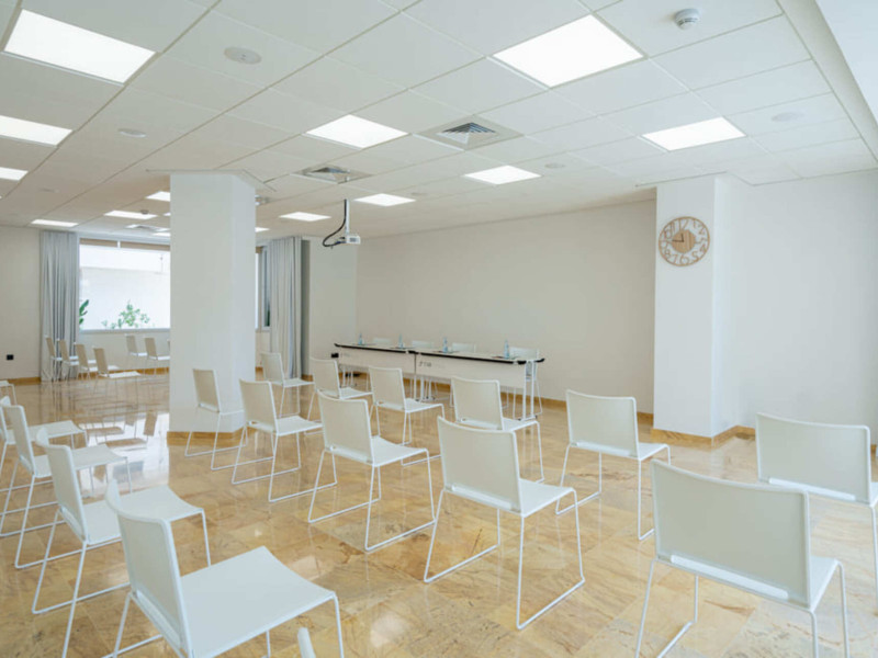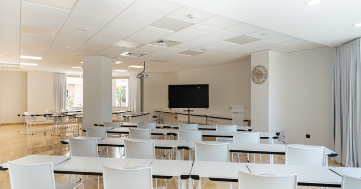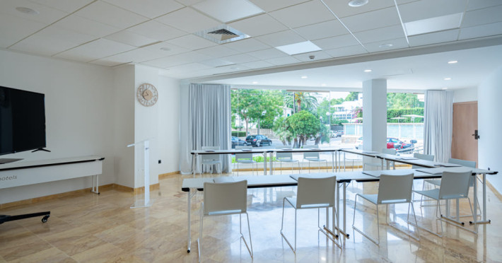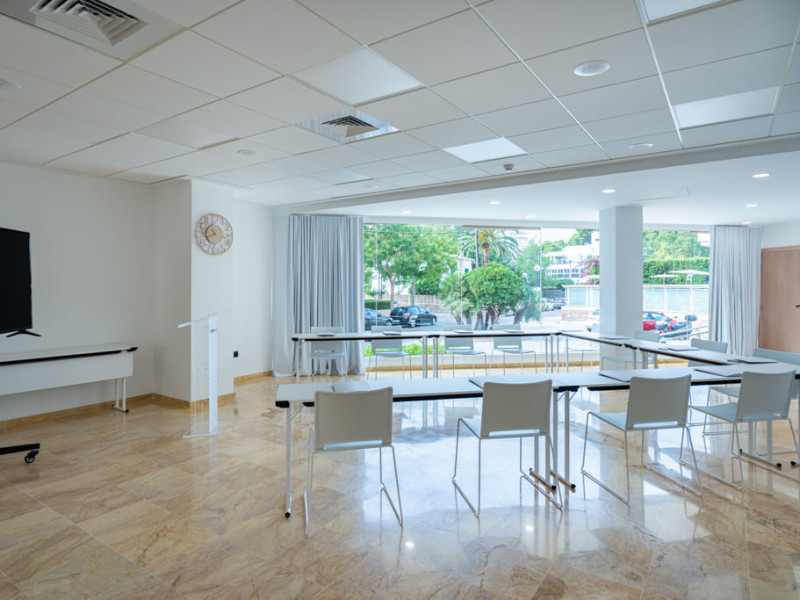 The aparthotel Hotel THB Maria Isabel Adults Only is located approximately 400 m from a sandy beach. The nearest shops you can reach within around 200 m. There is a shuttle service between the hotel and the airport. Nearby there is a disco which offers entertainment in high season. Directly next to the beach there is a promenade where you can take leisurely walks. The air-conditioned hotel has Wi-Fi, 3 lifts as well as a TV lounge. In the outdoor area you will find a heated pool that is open seasonally, where sun loungers, sun umbrellas and pool towels are available for free. Furthermore, outside you can find a sun terrace. Inside the hotel you can use a heated indoor pool. Your valuables can be stored in the hotel safe. At the reception, tickets are offered for excursions in the area. Catering As catering services the hotel offers all-inclusive, half board, full board and breakfast only. Breakfast is offered from the buffet. Lunch and dinner are also served from the buffet. For the meals, there are a buffet restaurant and the cafeteria as well as the pool bar. Distances