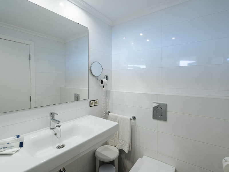 The aparthotel Hotel THB Maria Isabel Adults Only is located approximately 400 m from a sandy beach. The nearest shops you can reach within around 200 m. There is a shuttle service between the hotel and the airport. Nearby there is a disco which offers entertainment in high season. Directly next to the beach there is a promenade where you can take leisurely walks. The air-conditioned hotel has Wi-Fi, 3 lifts as well as a TV lounge. In the outdoor area you will find a heated pool that is open seasonally, where sun loungers, sun umbrellas and pool towels are available for free. Furthermore, outside you can find a sun terrace. Inside the hotel you can use a heated indoor pool. Your valuables can be stored in the hotel safe. At the reception, tickets are offered for excursions in the area. Catering As catering services the hotel offers all-inclusive, half board, full board and breakfast only. Breakfast is offered from the buffet. Lunch and dinner are also served from the buffet. For the meals, there are a buffet restaurant and the cafeteria as well as the pool bar. Distances- Nearest town: approximately at 11 km