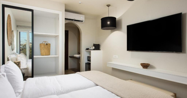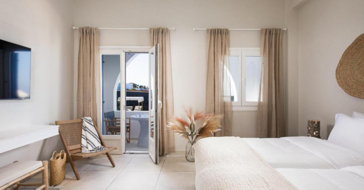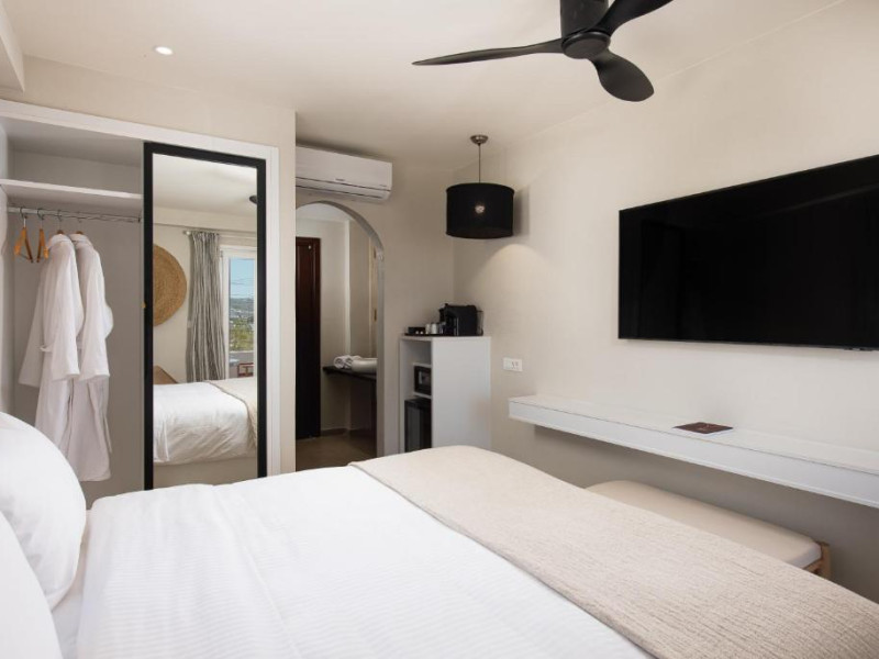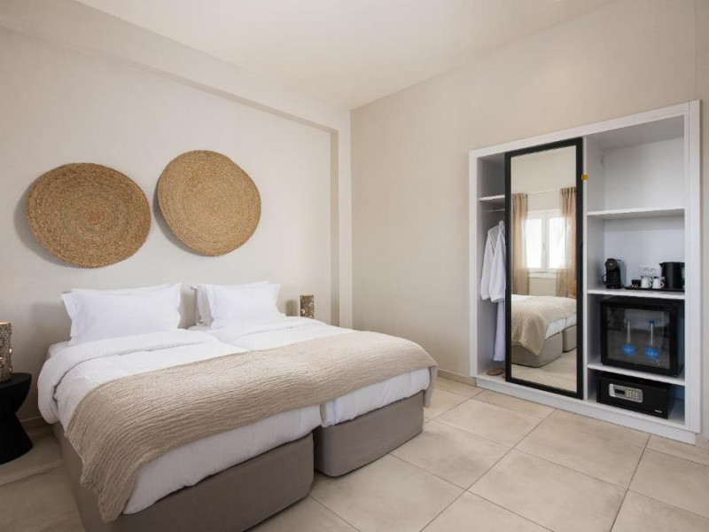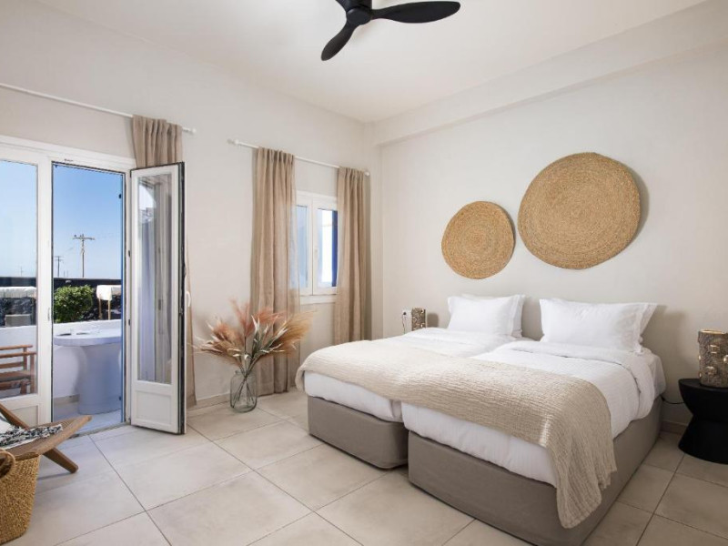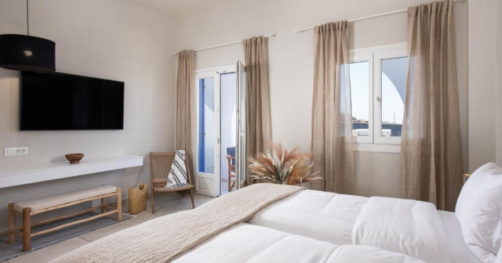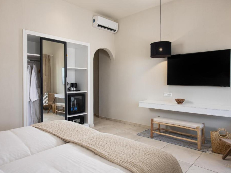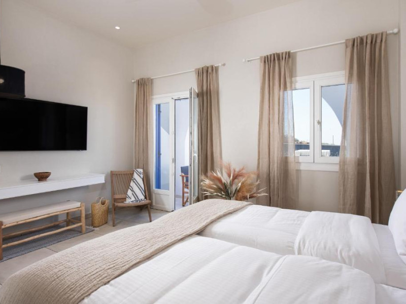 Acest hotel pune la dispoziția oaspeților camere cu aer condiționat, birou, cafetieră, un frigider, cutie de valori, televizor cu ecran plat și baie proprie cu duș. Baia proprie oferă articole de toaletă gratuite. La The Noverian Bios Santorini, camerele oferă lenjerie de pat și prosoape.