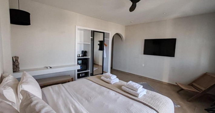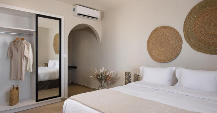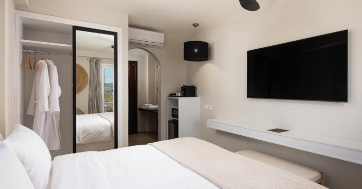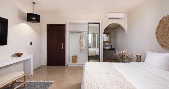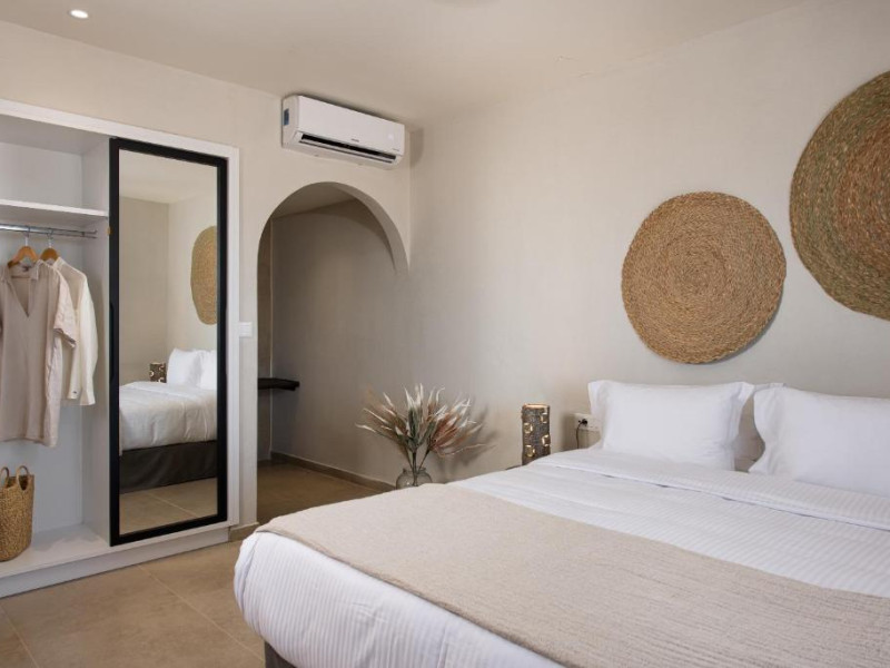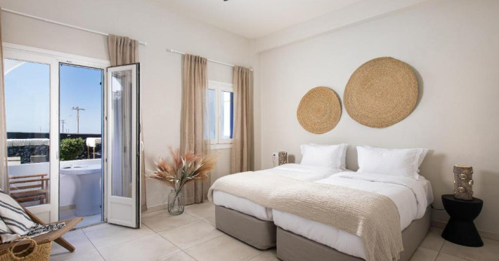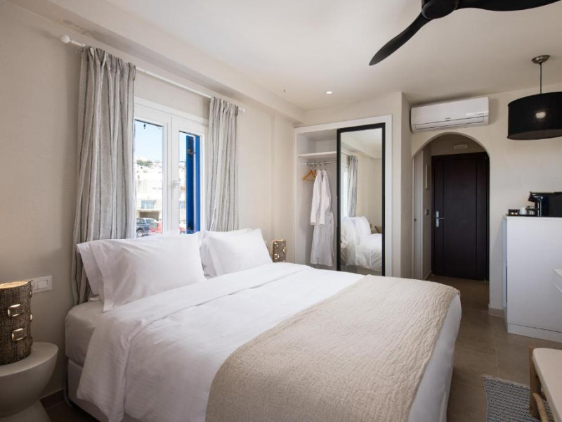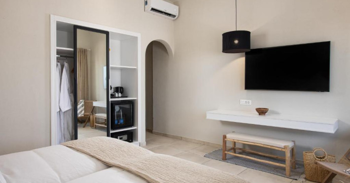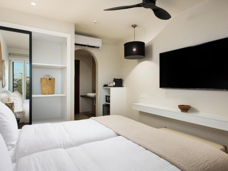 Acest hotel pune la dispoziția oaspeților camere cu aer condiționat, birou, cafetieră, un frigider, cutie de valori, televizor cu ecran plat și baie proprie cu duș. Baia proprie oferă articole de toaletă gratuite. La The Noverian Bios Santorini, camerele oferă lenjerie de pat și prosoape.