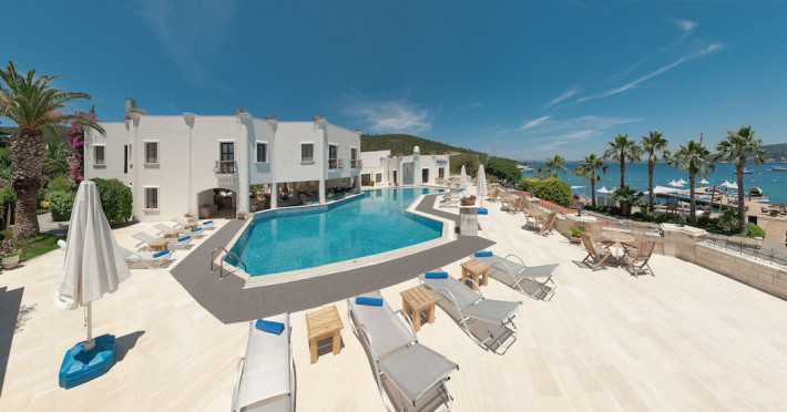 Near Torba Beach. A stay at Hotel Torbahan places you in the heart of Bodrum, a 1-minute drive from Torba Beach and 9 minutes from Bodrum Ancient Theater. This beach hotel is 5.1 mi (8.2 km) from Bodrum Castle and 5.6 mi (8.9 km) from Mausoleum at Halicarnassus. Make yourself at home in one of the 50 guestrooms featuring minibars and LCD televisions. Complimentary wireless internet access keeps you connected, and satellite programming is available for your entertainment. Private bathrooms with showers feature rainfall showerheads and complimentary toiletries. Conveniences include safes and electric kettles, and housekeeping is provided daily. Enjoy Mediterranean cuisine at KALABALIK, a beachfront fine-dining restaurant where you can enjoy drinks at the bar/lounge and dine alfresco. Or stay in and take advantage of the room service (during limited hours). Mingle with other guests at the complimentary reception, held daily. Wrap up your day with a drink at the poolside bar. A complimentary buffet breakfast is served daily from 8 AM to 10:30 AM. Head down to the water and enjoy a day at the private beach, or take advantage of other recreational amenities including an outdoor pool and karaoke. Additional features at this Mediterranean hotel include complimentary wireless internet access, concierge services, and wedding services. Guests can get around on the shuttle (surcharge), which operates within 7 km.Datorita dinamicitatii domeniului disponibilitatea ofertelor se modifica de la un moment la altul. De aceea ofertele sunt valabile in limita locurilor disponibile. Agentia nu este responsabila pentru eventualele neconcordante care pot aparea intre informatiile privind tarifele si alte detalii din site si informatiile primite in agentie. In aceste cazuri vor avea prioritate, intotdeauna, informatiile primite in agentie.