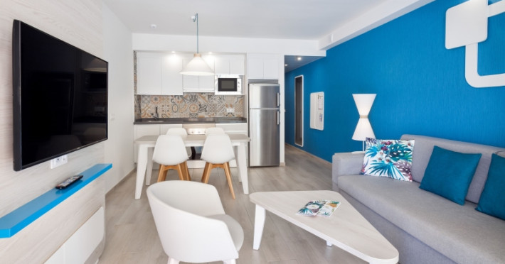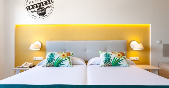 Around 300 m from a beach is located the apart hotel Hotel Tropical Park. The nearest restaurants and bars can be reached in a few minutes on foot. The city centre is around 13 km away. A supermarket is just a few metres away from the hotel. The hotel has a reception, Wi-Fi, internet access, a hairdresser, a jacuzzi, parking spaces as well as a TV lounge with satellite TV. In the outdoor area of the property you will find a garden as well as a heated salt water pool, where sun loungers and sun umbrellas are available for free. There is also a children's pool. Furthermore, you can relax outdoors on the sun terrace. Your valuables can be stored in the hotel safe. For very young guests, cots can also be provided. There is also a laundry service. If necessary, you can contact the medical centre. If you want to explore the holiday region, you can use the car rental service close to the hotel. Due to its barrier-free facilities , such as barrier-free entrances, the hotel is also suitable for wheelchair users. Catering As catering services the hotel offers half board. Breakfast is offered American, continental, from the buffet or à la carte. Enjoy your lunch from the buffet or à la carte. Dinner is also served as a buffet. For the meals, there are a buffet restaurant and the cafeteria as well as the pool bar. Distances- Discotheque: approx. 12 km