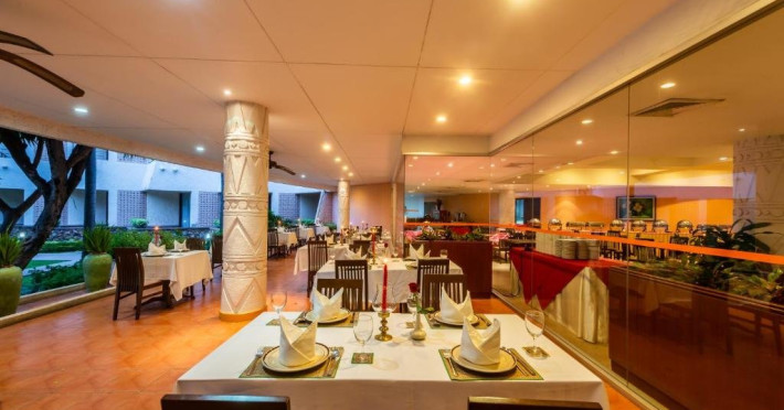 Restaurantul proprietCii serveCte o combinaCie de mA?ncruri locale Ci internaCionale Ci este disponibil pentru mese pe tot parcursul zilei.