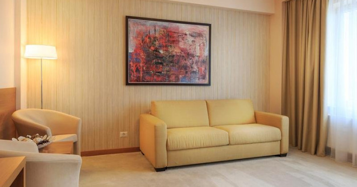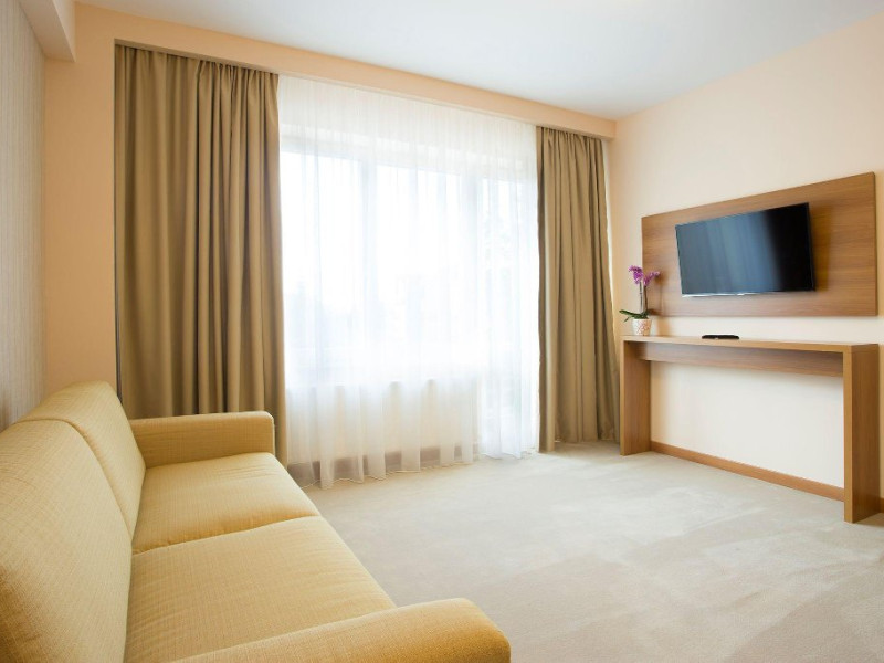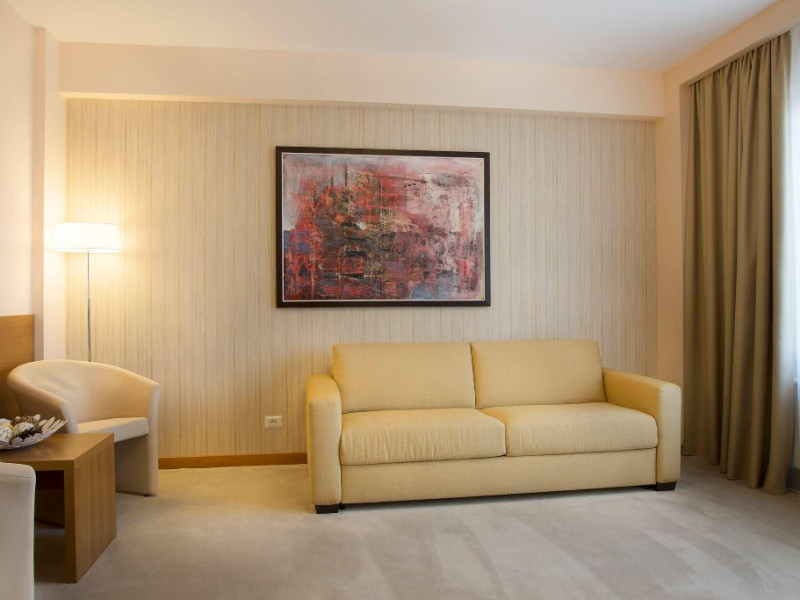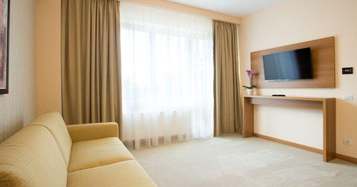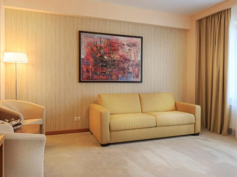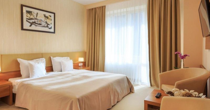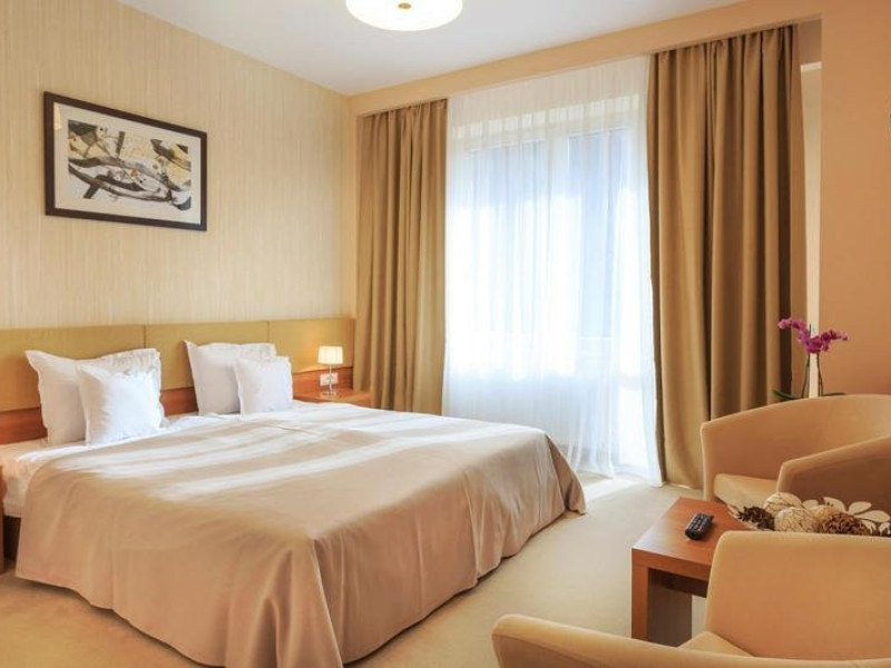 DESCRIERE CAMERE: sistem de climatizare, cablu TV cu pachet de peste 100 de programe, internet Wireless gratuit, linie telefonica, minibar, baie cu dotari full (fiecare vas WC cu functie de bideu, cada/cabina de dus,uscator de par, produse cosmetice, etc), seif, halat de baie, papuci, facilitati pentru prepararea ceaiului, detectoare de fum, patut copil la cerere, fier de calcat si masa de calcat la cerere. ATENTIE - Camerele duble premier sunt fara balcon !!!