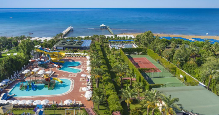 Hotelul include 4 blocuri principale si un Park Villa, avand un total de 458 de camere. Oaspetii se pot bucura de piscine interioare si exterioare, aquapark cu tobogane, spatiu de fitness, terenuri de tenis si fotbal, sala de jocuri, si o gama variata de restaurante si baruri. Restaurantul principal tip bufet serveste preparate internationale si locale, iar oaspetii pot opta pentru mese a la carte in restaurantele specializate in bucataria turceasca, italiana si asiatica. Printre facilitatile suplimentare se numara un centru spa, serviciu de room service, Wi-Fi gratuit in zonele publice, si activitati de animatie zilnica pentru adulti si copii. De asemenea, hotelul ofera si loc de joaca pentru copii, cinema si programe de divertisment.