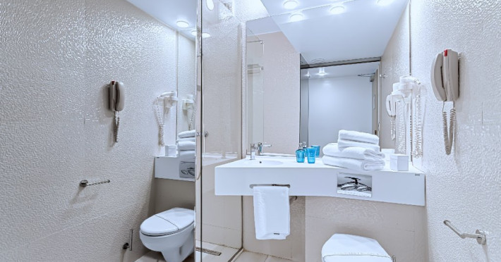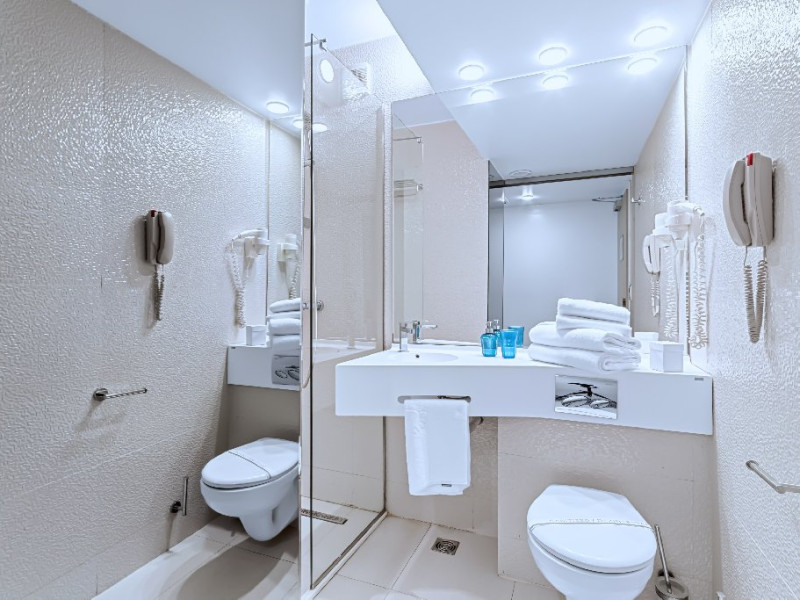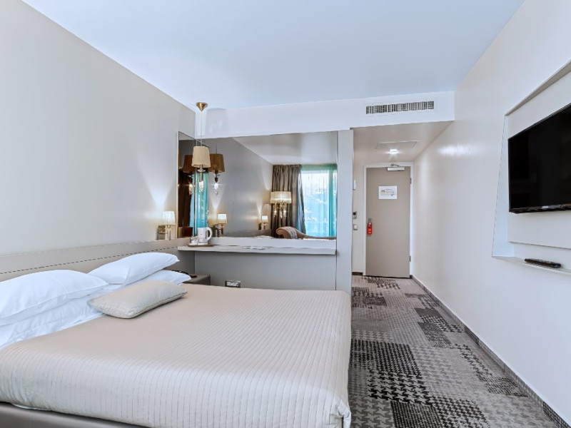 Dotari camere: aer conditionat -ventiloconvector, TV, minibar -(racitor), seif, baie cu dus, balcon -(la parter - balcon tip terasa), uscator de par, mocheta, telefon, acces pe baza de cartela magnetica, internet wireless gratuit.