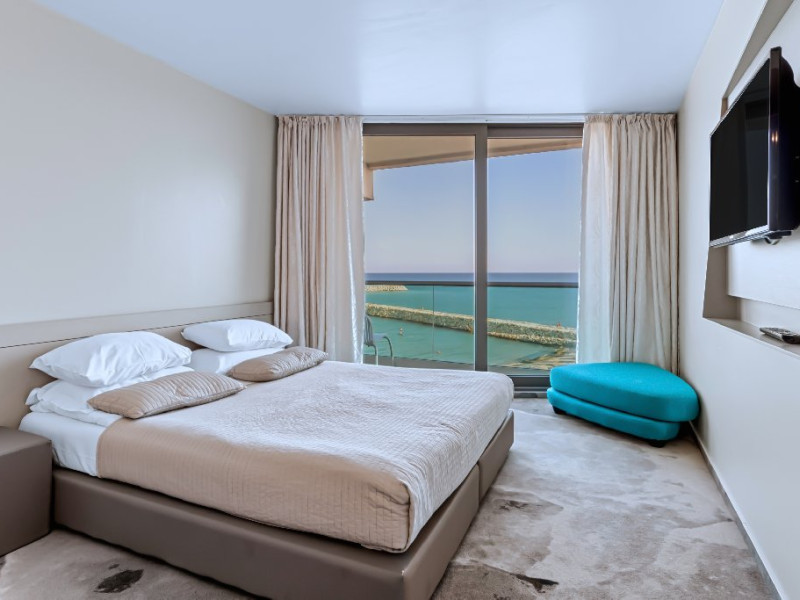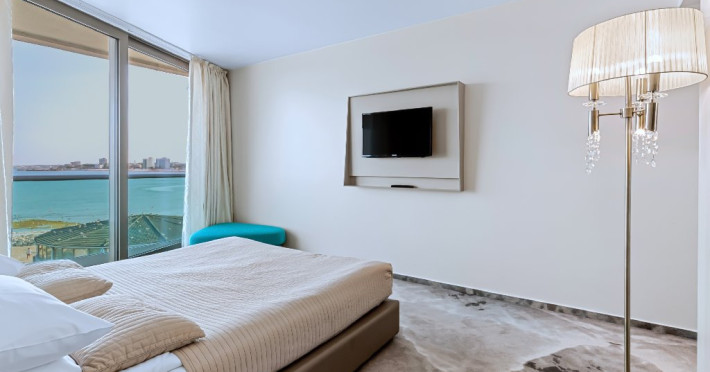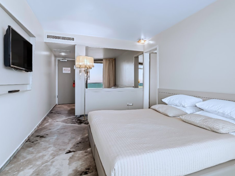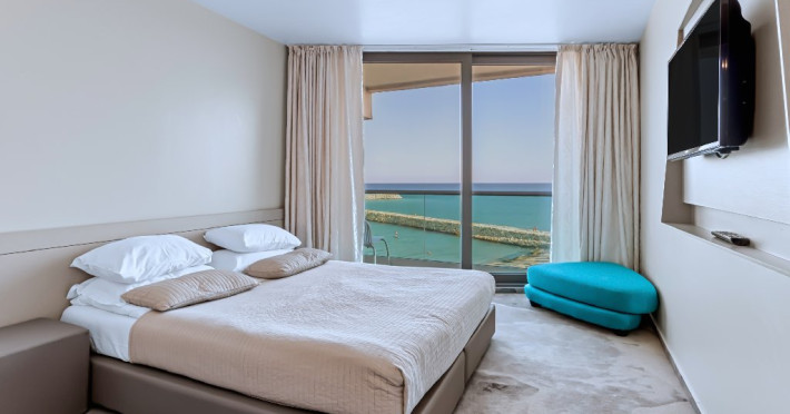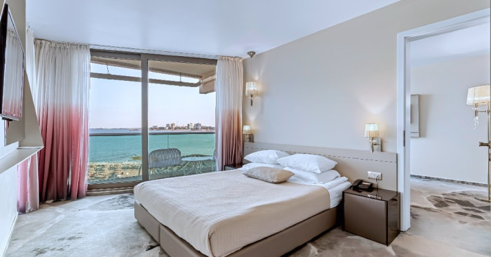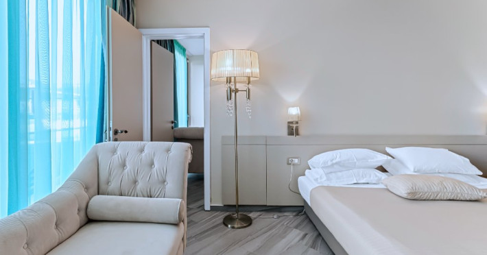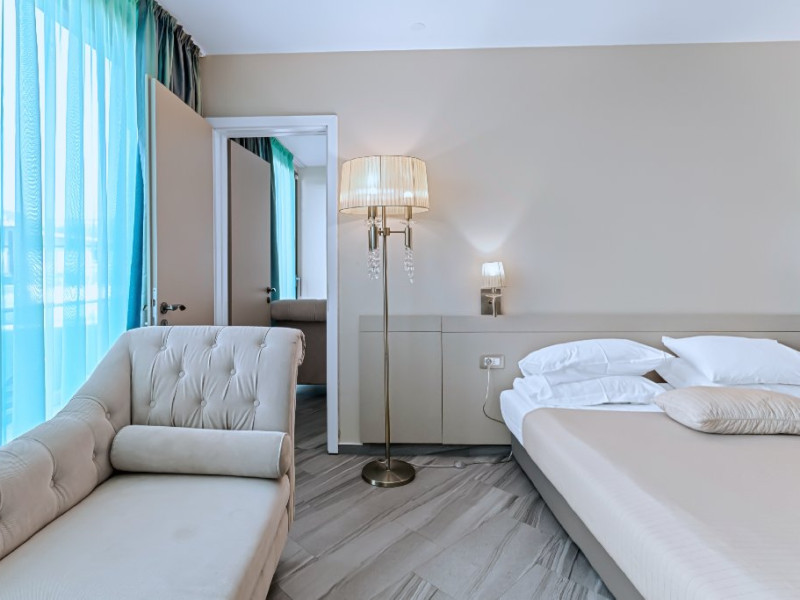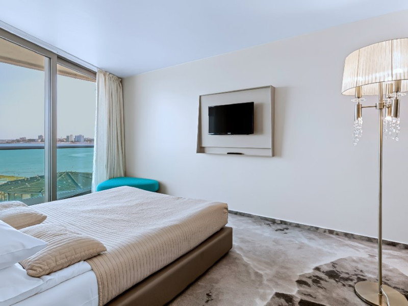 Apartamente: 8 - apartamentul este compus din doua camere cu usa intre ele, fiecare camera dispune de baie proprie si balcon. Incepand cu anul 2021 apartamentele dispun de pat matrimonial in ambele camere. Toate apartamentele au vedere frontala la mare.