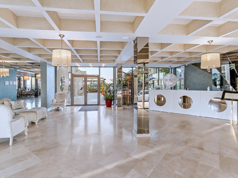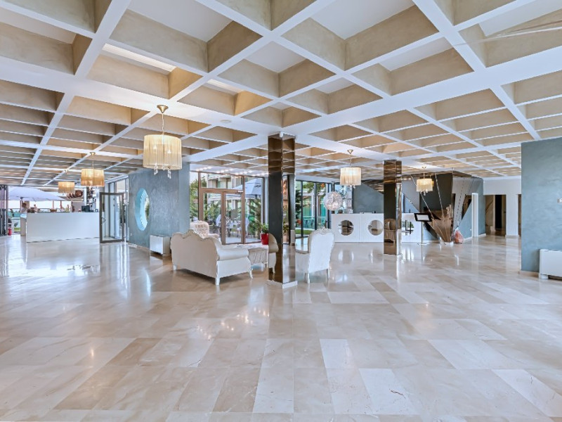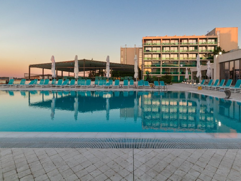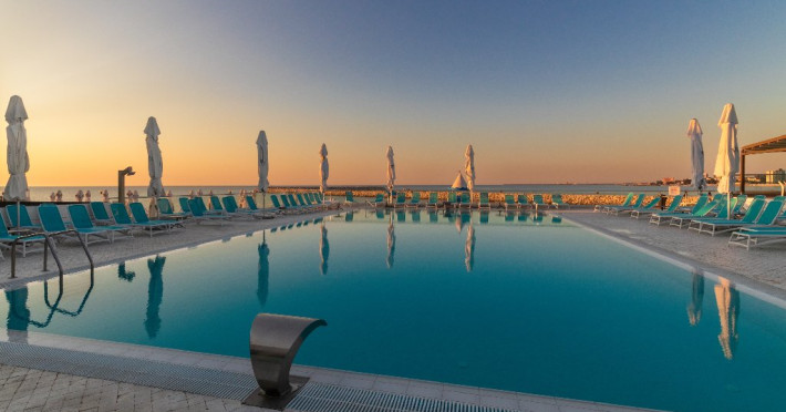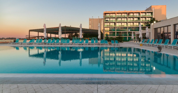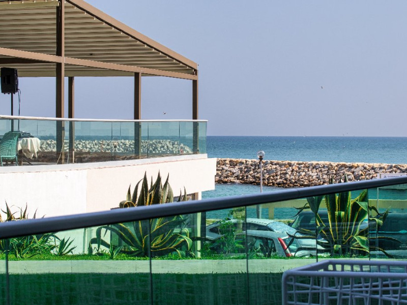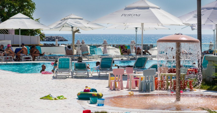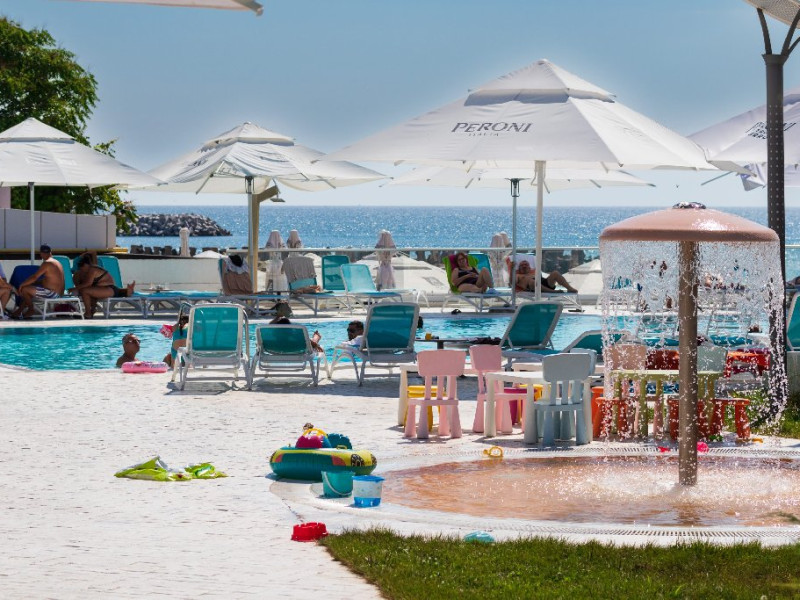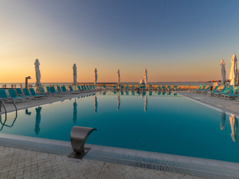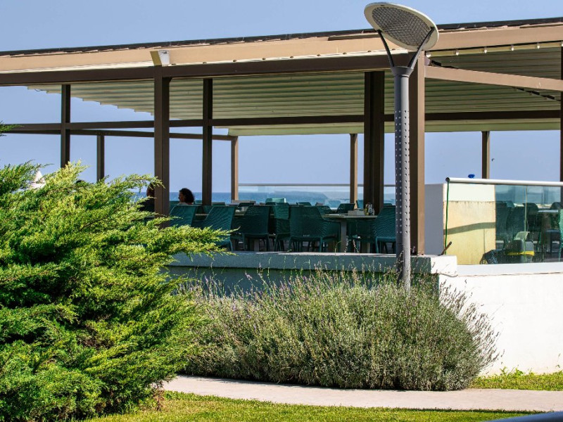 La exterior, restaurantul se continua cu o terasa generoasa care va permite sa va relaxati bucurandu-va de briza marii. Hotelul dispune de plaja proprie, iar oaspetii sai au acces gratuit la sezlonguri si umbrele.
