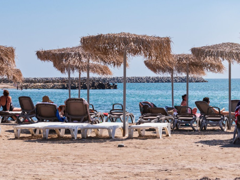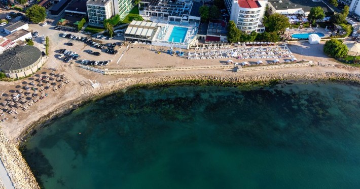 Plaja proprie cu acces gratuit la sezlonguri si umbrele.