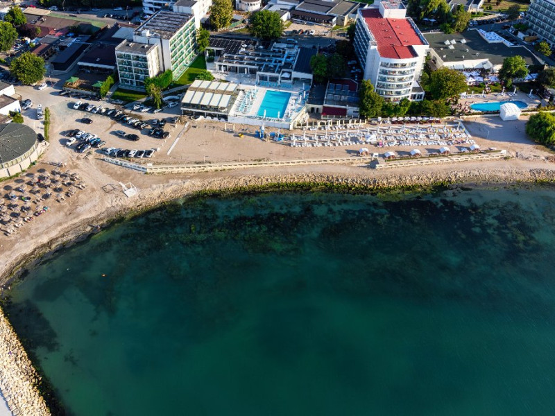 Hotelul dispune de restaurant care serveste preparate din bucataria romaneasca si internationala, lift, piscina in aer liber, lobby-bar in receptie, terasa exterioara cu vedere la mare, loc de joca pentru copii amenajat pe plaja ,gradina amenajata, parcare privata gratuita in limita locurilor disponibile.