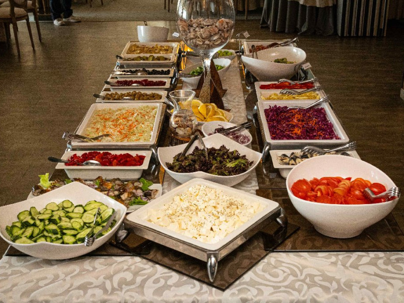 Toate mesele sunt servite sub forma de bufet (bucatarie romaneasca si internationala diversificata), incluzand surpriza bucatarului (la cina), bufet de salate, fructe si deserturi.