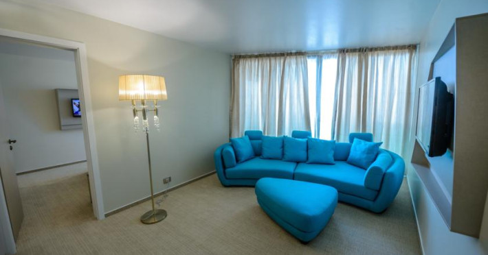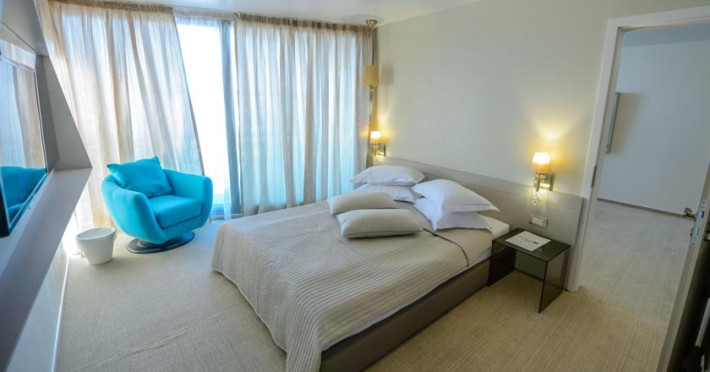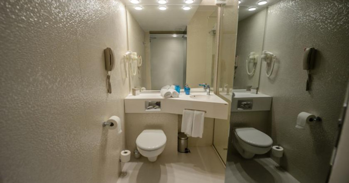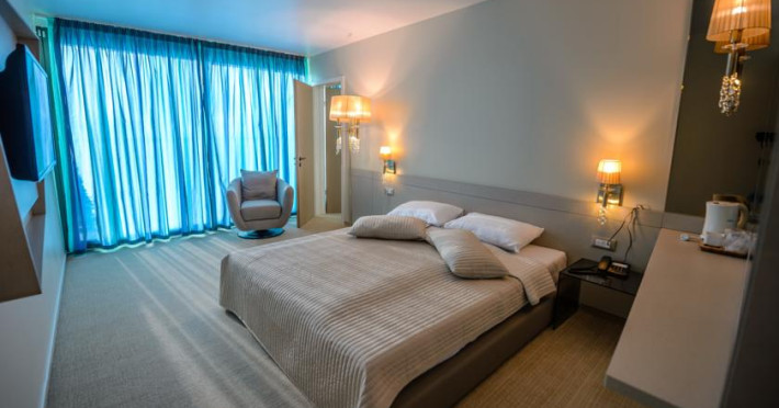 Facilități cameră dublă: pat matrimonial sau twin, baie proprie (cabină de duș sau cadă), uscător de păr, balcon, Smart TV, Wi-Fi și sistem de climatizare.