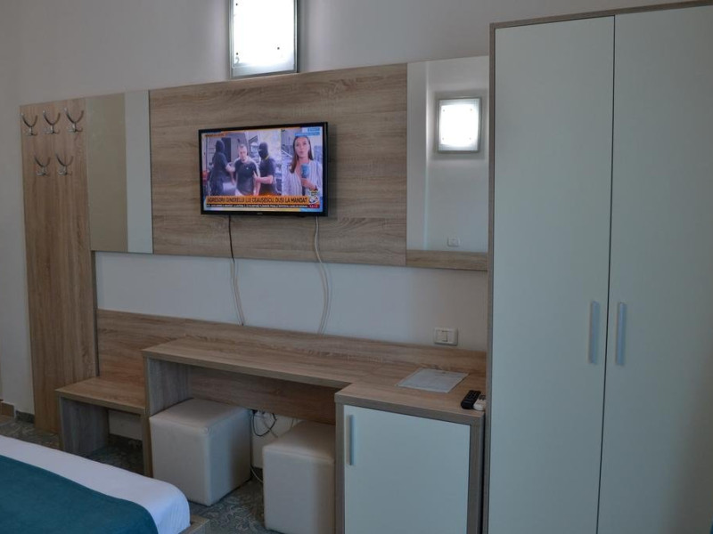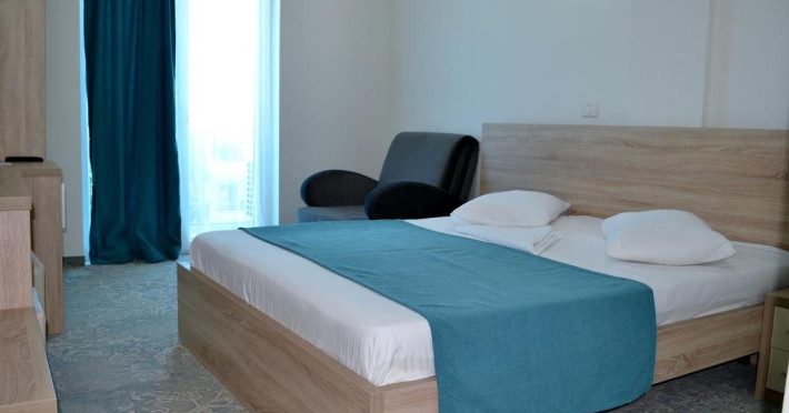 Dotari camere: Hotelul dispune de 72 camere duble cu vedere la mare sau standard si 3 apartamente situate pe 3 etaje, dotate cu cu pat matrimonial sau doua paturi, baie proprie, aer conditionat, balcon, TV cablu, minibar, aer conditionat, internet wireless.