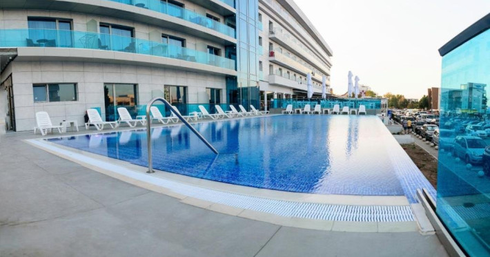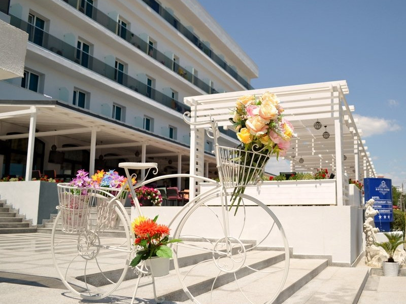 Hotelul are bar, restaurant- terasa, loc de joaca pentru copii la plaja, sala de conferinta, lift- doua lifturi panoramice, plaja privata pentru clientii hotelului situata in fata hotelului, parcare- gratuita - in limita locurilor disponibile. Piscina infinity noua, cu electroliza salina - acces gratuit la piscina si sezlong- in limita sezlongurilor disponibile.