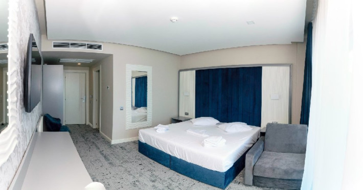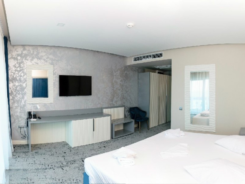 Duble: 166 - dintre care 69 camere duble superior 4*, 52 camere duble vedere mare 3* si 45 camere duble standard 3*. Camerele dispun de pat matrimonial.