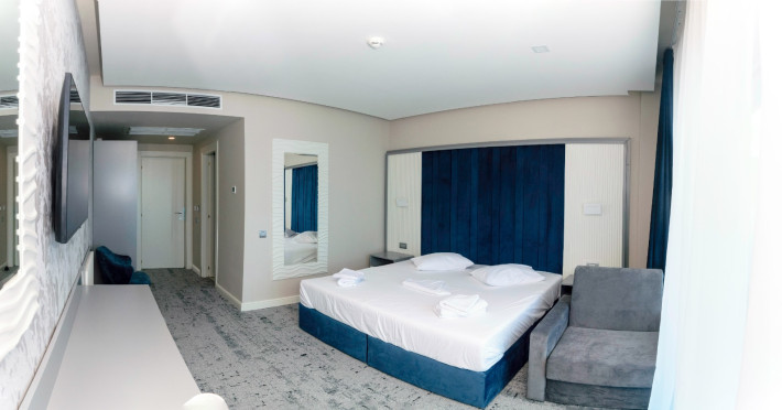 Beneficiind de o locatie perfecta, la numai 30 de metri de plaja, in statiunea estivala Eforie Nord, langa Constanta, pe coasta pitoreasca a Marii Negre, Hotelul Union este o destinatie de vara excelenta. Pozitionarea excelenta, la cativa pasi de plaja, il face unul dintre cele mai solicitate locatii din statiune Hotelul este clasificat la categoria 3 stele si pune la dispozitie 45 camere duble standard, 52 camere duble vedere mare si 4 apartamente vedere mare. In anul 2022, Hotel Union s a extins cu un corp nou, clasificat la categoria 4 stele. Acesta pune la dispozitie 68 de camere duble superioare si un apartament. Hotelul dispune de doua lifturi moderne si de o parcare privata pentru 50 de locuri. Salonul si terasa amplasate la parterul hotelului ofera micul dejun in regim bufet suedez. Hotel Union a fost modernizat in 2017 si ofera camere cu vedere spre mare sau spre statiune, complet renovate, iar corpul nou va fi dat in folosinta in primavara anului 2022. Nou - Piscina Infinity finalizata 2022, plaja privata situata in fata hotelului, 2 lifturi panoramice. Pentru servirea mesei, Hotel Union detine un restaurant cu terasa cu vedere spre mare. Aici turistii se pot relaxa in compania bucatelor apartinand bucatariei internationale sau a preparatelor italiene. Pe terasa, seara, sunt organizate diverse spectacole artistice. Pentru organizarea de evenimente, Hotel Union are in dotare o sala de conferinte cu capacitate de 40 locuri. Se ofera gratuit acces la internet wireless. Toate camerele sunt dotate cu TV Smart Digital LED 80 cm / 109 cm , telefon, internet wireless, minibar, aer conditionat, uscator de par, balcon cu mobilier, pardoseala acoperita cu mocheta si/sau gresie. Toate camerele includ baie privata cu articole de toaleta gratuite. Patul este dotat cu o saltea foarte confortabila de 20 cm / 26 cm inaltime.Datorita dinamicitatii domeniului disponibilitatea ofertelor se modifica de la un moment la altul. De aceea ofertele sunt valabile in limita locurilor disponibile. Agentia nu este responsabila pentru eventualele neconcordante care pot aparea intre informatiile privind tarifele si alte detalii din site si informatiile primite in agentie. In aceste cazuri vor avea prioritate, intotdeauna, informatiile primite in agentie.