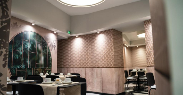 Hotelul serveste zilnic un mic dejun tip bufet. Există un distribuitor automat cu băuturi reci la etajul 1, precum si un lounge cu TV pentru ca oaspetii să se relaxeze.