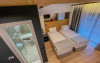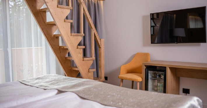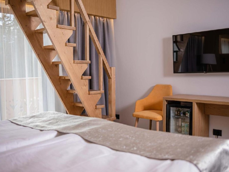 Camera Family are o suprafata de 20 mp si dispune de un pat matrimonial 120x200 cm, incalzire in pardoseala, priveliste catre Masivul Postavaru si balcon, baie proprie cu cabina de dus.