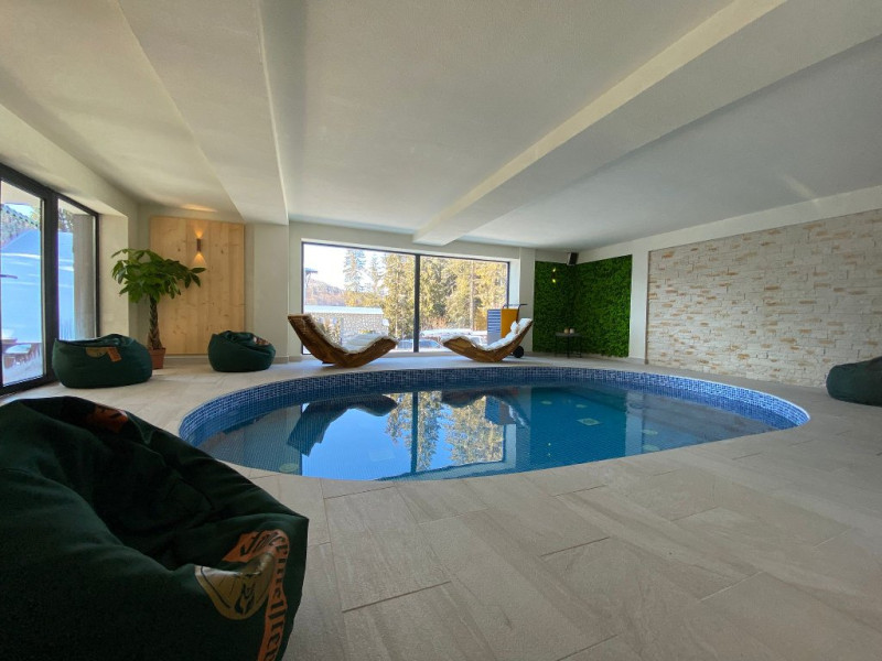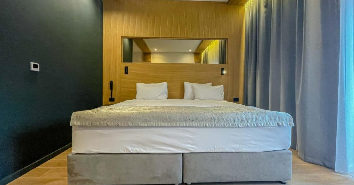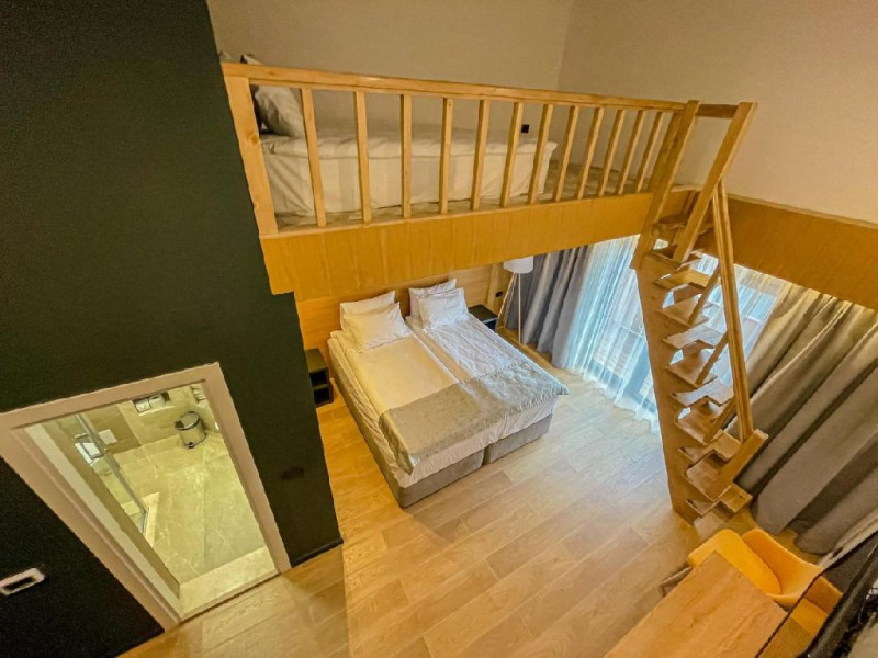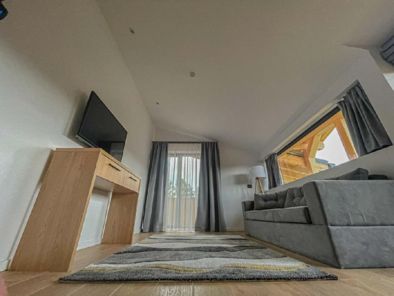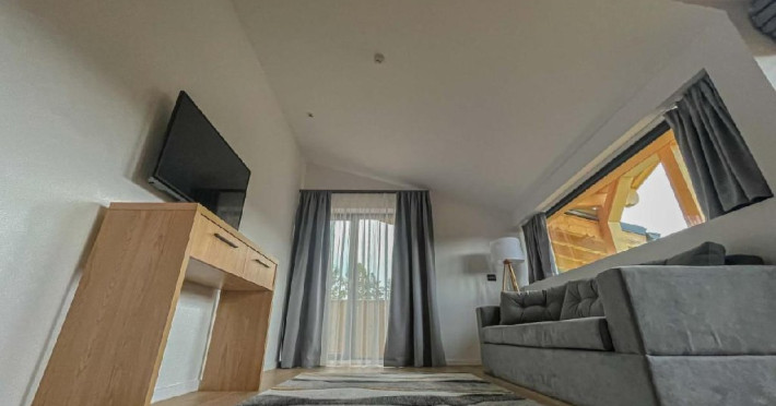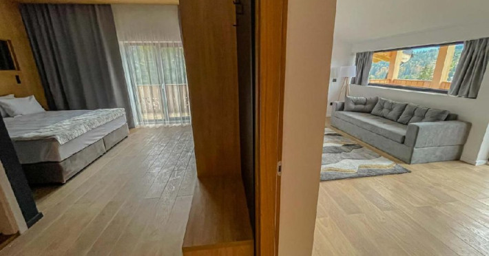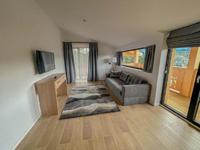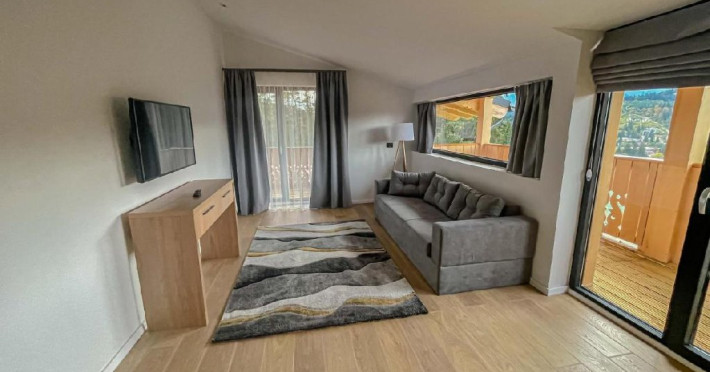 Apartamentul are suprafata de 35 mp, dispune de un pat matrimonial 200x200 cm, un living spatios si lumina naturala unde se gaseste o canapea extensibila, incalzire in pardoseala, priveliste catre Masivul Bucegi si partia Clabucet, balcon si baie proprie cu cabina de dus.