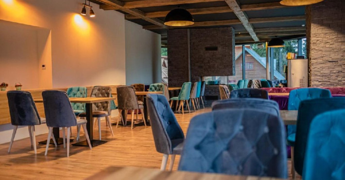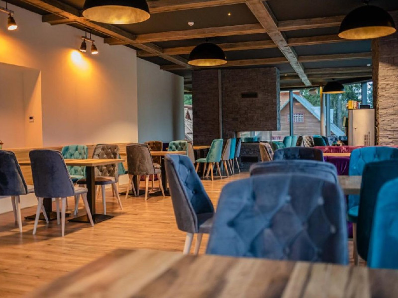 Mesele se servesc in restaurantul propriu care are o capacitate de 90 de locuri.
