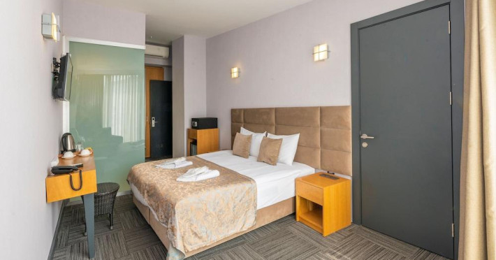 Take in the views from a terrace and a garden and make use of amenities such as a television in a common area. This hotel also features tour/ticket assistance and a banquet hall.. Featured amenities include express check-in, a 24-hour front desk, and multilingual staff. A roundtrip airport shuttle is provided for a surcharge (available 24 hours)..Optional fees: Airport shuttle fee: EUR 80 per vehicle (roundtrip, maximum occupancy 7) Nearby parking fee: EUR 10 per day (16 ft away) Rollaway bed fee: EUR 15.0 per night The above list may not be comprehensive. Fees and deposits may not include tax and are subject to change. . Policies: One child 7 years old or younger stays free when occupying the parent or guardian's room, using existing bedding. The property has connecting/adjoining rooms, which are subject to availability and can be requested by contacting the property using the number on the booking confirmation. No pets and no service animals are allowed at this property. . Instructions: Extra-person charges may apply and vary depending on property policy Government-issued photo identification and a credit card, debit card, or cash deposit may be required at check-in for incidental charges Special requests are subject to availability upon check-in and may incur additional charges; special requests cannot be guaranteed This property accepts credit cards, debit cards, and cash This property has outdoor spaces, such as balconies, patios, terraces which may not be suitable for children; if you have concerns, we recommend contacting the property prior to your arrival to confirm they can accommodate you in a suitable room . Special instructions: This property offers transfers from the airport (surcharges may apply). Guests must contact the property with arrival details before travel, using the contact information on the booking confirmation. Front desk staff will greet guests on arrival at the property.. Minimum age: 18. Check in from: 2:00 PM. Check in to: midnight. . Check out: 12:00 PM.Take in the views from a terrace and a garden and make use of amenities such as a television in a common area. This hotel also features tour/ticket assistance and a banquet hall.. Featured amenities include express check-in, a 24-hour front desk, and multilingual staff. A roundtrip airport shuttle is provided for a surcharge (available 24 hours)..Optional fees: Airport shuttle fee: EUR 80 per vehicle (roundtrip, maximum occupancy 7) Nearby parking fee: EUR 10 per day (16 ft away) Rollaway bed fee: EUR 15.0 per night The above list may not be comprehensive. Fees and deposits may not include tax and are subject to change. . Policies: One child 7 years old or younger stays free when occupying the parent or guardian's room, using existing bedding. The property has connecting/adjoining rooms, which are subject to availability and can be requested by contacting the property using the number on the booking confirmation. No pets and no service animals are allowed at this property. . Instructions: Extra-person charges may apply and vary depending on property policy Government-issued photo identification and a credit card, debit card, or cash deposit may be required at check-in for incidental charges Special requests are subject to availability upon check-in and may incur additional charges; special requests cannot be guaranteed This property accepts credit cards, debit cards, and cash This property has outdoor spaces, such as balconies, patios, terraces which may not be suitable for children; if you have concerns, we recommend contacting the property prior to your arrival to confirm they can accommodate you in a suitable room . Special instructions: This property offers transfers from the airport (surcharges may apply). Guests must contact the property with arrival details before travel, using the contact information on the booking confirmation. Front desk staff will greet guests on arrival at the property.. Minimum age: 18. Check in from: 2:00 PM. Check in to: midnight. . Check out: 12:00 PM.