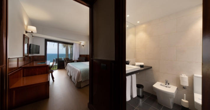 In the vicinity of the stone beach and approx. 100 m from the sea is located the apart hotel Hotel Vallemar. The nearest bars and restaurants are located directly next to the building. The old town is around 300 m away. Shops are right on your doorstep, a supermarket is around 200 m away. In the surrounding a disco (approx. 150 m away), an aqua park (approx. 100 km) and a cinema (approx. 2 km) offer entertainment during the best time of the year. The beach is patrolled by a lifeguard. The air-conditioned hotel is equipped with a 24h reception (check-in is possible around the clock), Wi-Fi, a lift, a jacuzzi, parking spaces (for a fee) as well as a TV lounge with satellite TV. In the outdoor area of the property you will find a garden as well as a seasonally open salt water pool, where sun loungers, sun umbrellas and pool towels are available for free. You can store your valuables in the safe (extra fee), and your luggage in the hotel`s storage roomn. For very young guests, kid`s chairs can be provided). To clean your clothes there is a laundry service (extra fee). For your comfort there is a concierge service. Guests at the accommodation can get a wake-up call from the hotel personnel. For conventions and other business meetings, the hotel offers a conference area (extra fee) with a total of 300 seats as well as overhead projector. If you want to explore the holiday region, you can use the car rental service close to the hotel (extra fee). At the hotel reception, tickets are offered for excursions in the area. Pets like cats and dogs are allowed in the hotel (on request) . In your hotel, a lot of focus is placed on sustainability. This includes the hotel`s own recycling bins and ecological meals. Due to its barrier-free facilities , such as barrier-free entrances, wheelchair accessible rooms and wheelchair-accessible bathrooms, the hotel is also suitable for wheelchair users. Catering As catering services the hotel offers half board and full board. Breakfast is offered continental or from the buffet (extras on request). Enjoy your lunch as a set meal or à la carte (extras on request). Dinner is also served as a buffet (extras on request). For the meals, there are a restaurant (gluten-free dishes) and the cafeteria as well as the pool bar. Appropriate clothing is required for lunch and dinner. Distances