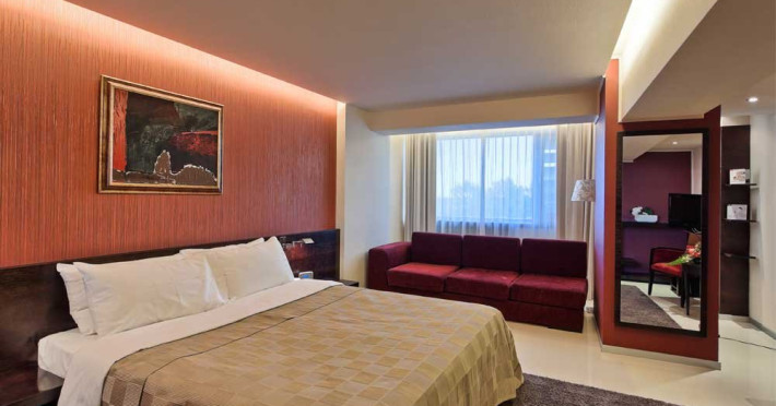 Family Room (54 mp) este compusa din doua camere duble standard (una cu pat matrimonial si una cu doua paturi separate, cu usa comunicanta dubla intre ele). In acest tip de camera pot fi cazate 4 persoane.