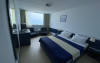 Aproximativ jumatate din numarul camerelor disponibile beneficiaza de vedere la mare, iar cealalta jumatate beneficiaza de o vedere superba panoramica catre statiunea Venus.Camerele sunt extrem de spatioase - aprox. 32 mp, fiind dotate cu doua paturi sau cu pat matrimonial queen, baie proprie, aer conditionat, TV-LCD, WI-FI gratuit, uscator de par, uscator de prosoape si haine.Servicii de masa