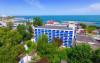 Hotel VENUS este situat in centrul statiunii Venus, Judetul Constanta, la mai putin de 50m de plaja. Renovat in anul 2020, dispune de 80 camere, Dubla cu vedere catre Statiune si Dubla cu vedere catre Mare sau Piscina. Aproximativ jumatate din numarul camerelor disponibile beneficiaza de vedere frontala la Marea Neagra sau Piscina hotelului, iar cealalta jumatate beneficiaza de o vedere superba panoramica catre statiunea Venus. Camerele sunt extrem de spatioase – cca. 32mp, fiind dotate cu doua paturi sau cu pat matrimonial queen, baie proprie, aer conditionat, TV lcd, uscator de prosoape si haine, uscator de par. Fiecare camera este dotata cu Wi-Fi gratuit, disponibil de asemenea pe toate suprafata complexului hotelier. Hotelul Venus dispune de terasa-restaurant cu o capacitate de peste 300 locuri in aer liber. Restaurantul hotelului propune un meniu diversificat incepand cu produse nationale specifice diferitelor parti ale Romaniei cat si un meniu variat, international. In sezon, terasa-restaurant propune turistilor program artistic variat cu muzica live in fiecare seara. La exterior, hotelul este dotat cu piscina proprie, sezlonguri si umbrele in limita locurilor disponibile si parcare gratuita in limita locurilor disponibile.