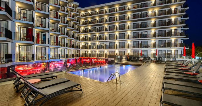About 300 m from a beach lies the hotel Hotel Vibra District (Adults Only). The city centre is around 16 km away. The hotel is equipped with a 24h reception, Wi-Fi, 3 lifts, a jacuzzi as well as parking spaces (for a fee). In the outdoor area of the property you will find a pool that is open seasonally, where sun loungers are available for free. Furthermore, you can relax outdoors on a terrace. You can store your luggage in the hotel's storage room. There is also a laundry service available at an additional cost to customers. Guests at the accommodation can get a wake-up call from the hotel personnel. Euro/Master Card and Visa are accepted as means of payment. Catering As catering services the hotel offers all-inclusive. Your physical well-being is catered for by the pool bar. A picnic bench can be used by guests for self-catering. Distances- Airport: approximately at 21 km