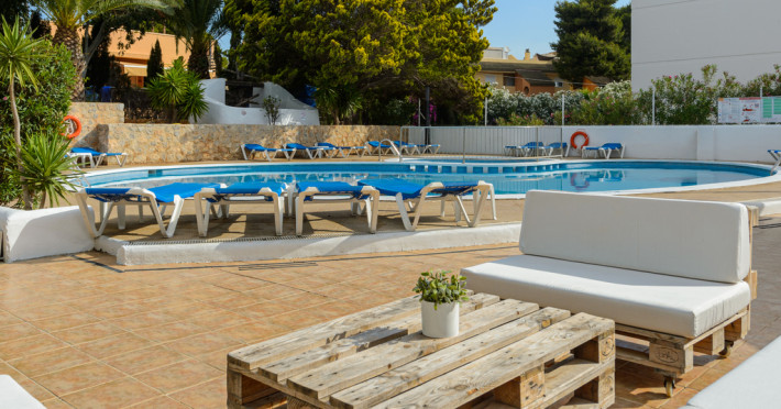 The complex has 84 rooms (43 twins, 20 singles and 21 double rooms). Comfortable, spacious and bright, designed to offer you a pleasant and peaceful stay, perfect to give you the rest you deserve after a day at the beach or a non-stop night in Playa d'en Bossa! The hotel has a swimming pool in a pleasant area with a lawn, sunbeds and Balinese beds available to guests. In addition, the establishment has an internet access area and a pool table. The hotel also offers its guests a luggage storage service.