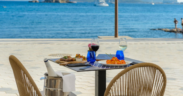 Facilities and services include restaurant (breakfast and dinner), Vibra Maritimo HotelThe gastronomic offer is complete and begins with an energizing and varied breakfast, and finishes tasting our delicious dinner (service is available from 01st November), which consists of a daily menu with choice of starter, main course and dessert, drinks NOT included, also suitable for vegetarians/vegans.bar, indoor swimming pool, gym, wireless Internet access, and elevator.Rooms feature air conditioning, cable/satellite TV, Wi-Fi, safe, bath, hairdryer, desk, cleaning/housekeeping and change of towels provided daily while change of linen provided every 3 days.Address: Calle Ramon Muntaner 48 Ibiza 07800 Spain.The reception, open 24 hours a day offers change, safe, cars and motorcycles for rent.Facilities and services include restaurant (breakfast and dinner), Vibra Maritimo HotelThe gastronomic offer is complete and begins with an energizing and varied breakfast, and finishes tasting our delicious dinner (service is available from 01st November), which consists of a daily menu with choice of starter, main course and dessert, drinks NOT included, also suitable for vegetarians/vegans.bar, indoor swimming pool, gym, wireless Internet access, and elevator.Rooms feature air conditioning, cable/satellite TV, Wi-Fi, safe, bath, hairdryer, desk, cleaning/housekeeping and change of towels provided daily while change of linen provided every 3 days.Address: Calle Ramon Muntaner 48 Ibiza 07800 Spain.The reception, open 24 hours a day offers change, safe, cars and motorcycles for rent.