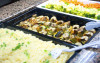 Toate mesele sunt servite sub forma de bufet - bucatarie romaneasca si internationala diversificata , cine tematice.