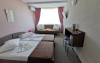 Dispune de doua paturi separate de o persoana 90x190 cm si o canapea extensibila. Baia este reconditionata partial. Suprafata totala a camerei family este de aproximativ 21 m inclusiv holul si baia.