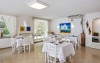 Piscina interioara este cu apa termala, la o temperatura constanta intre 28 si 30 grade, iar cea exterioara are o temperatura ambianta si este dotata cu umbrele de soare si sezlonguri.Vila este dotata cu cateva aparate de fitness, cu ajutorul carora te poti mentine in forma in perioada vacantei.