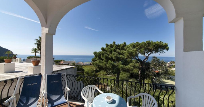 Hotelul Villa Melodie se afla pe partea de vest a insulei Ischia, in orasul Forio, pe un promontoriu care il separa de plaja Citara. Vila este inconjurata de podgorii si plantatii de lamai, care iti rasfata simturile cu miresmele lor placute. Are o amplasare perfecta, la doar 12 km de portul din Ischia, la 2 km de centrul din Forio si la 1.5 km de cel mai mare parc termal din insula, Giardini Poseidon. Vila ofera o priveliste incantatoare asupra insulei Ventotene si farului Punta Imperatore.