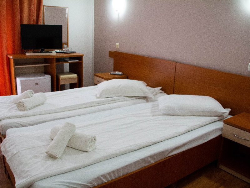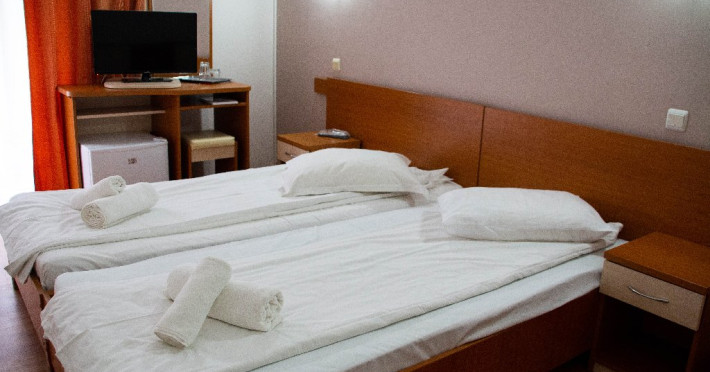 Duble: 11 camere cu pat matrimonial, 42 camere cu doua paturi lipite si 2 camere superior.Camerele duble superior dispun de pat matrimonial si au suprafata mai mare.