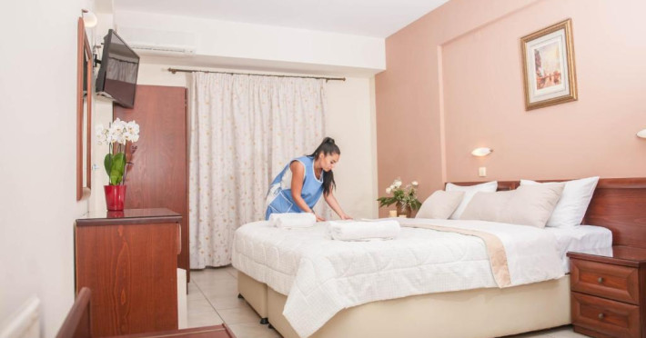 Camerele Hotelului Vizantio sunt luminoase și aerisite și sunt dotate cu aer condiționat și televizor. Toate au baie privată cu duș.