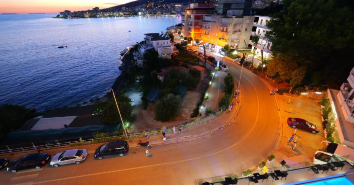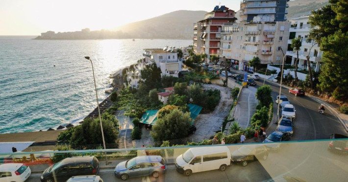 Centrul orașului Sarandë este la aproximativ 1,5 km. Acolo se află stația de autobuz, cu diverse linii interne, și portul de feriboturi cu legături către Insula Corfu și aeroportul internațional.