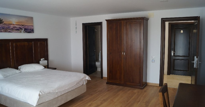 Camera dubla family (11) dispune de pat matrimonial (160x200) si o canapea extensibila (160x200 extinsa), LCD tv, minibar, aer conditionat, incalzire in pardoseala, podele de parchet, wireless internet, acces pe baza de card magnetic, baie cu dus si uscator de par, balcony. Suprafata 44 mp (inclusiv balcon).