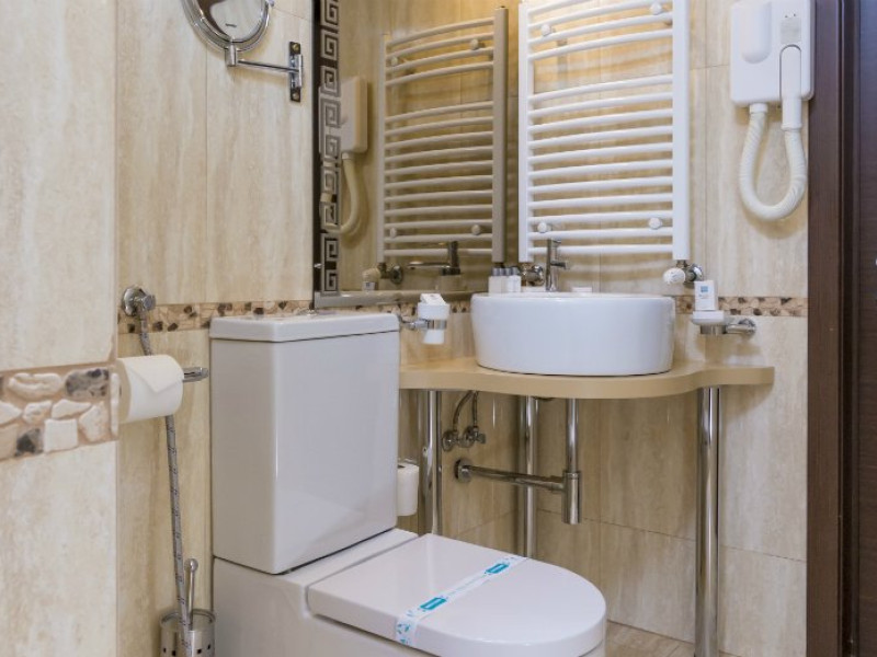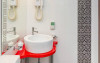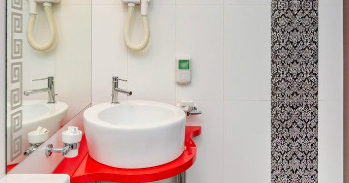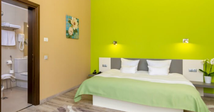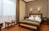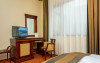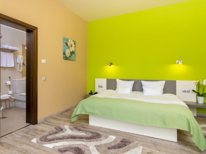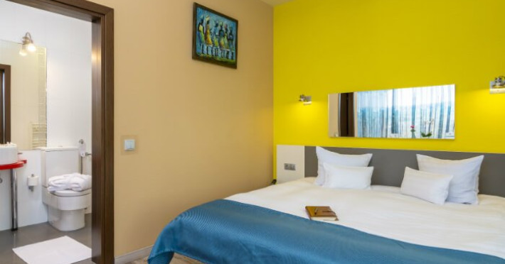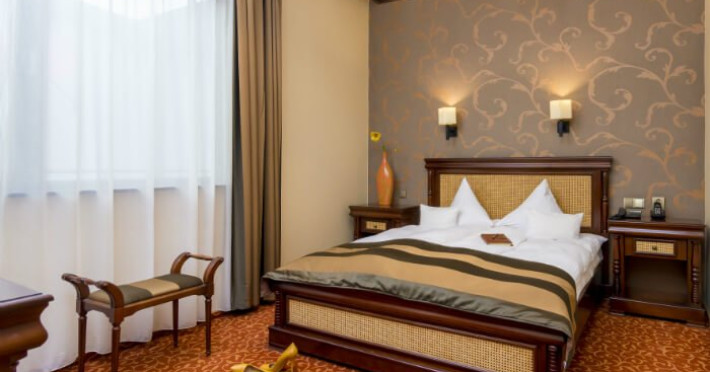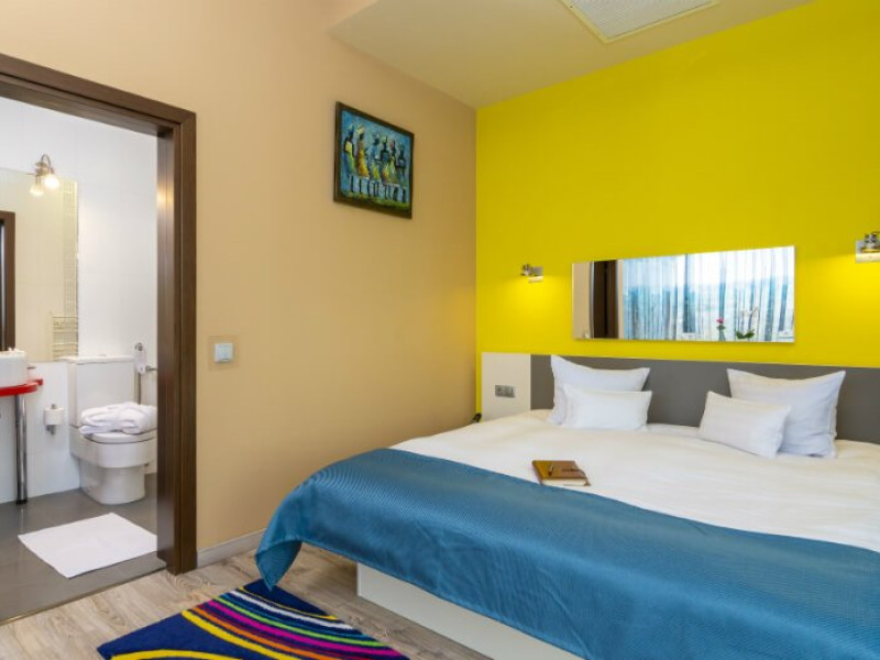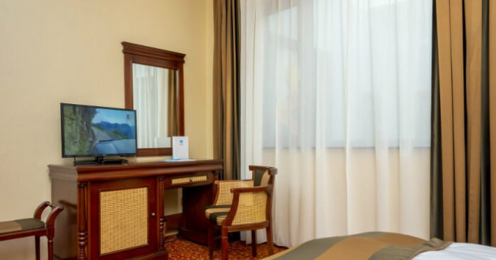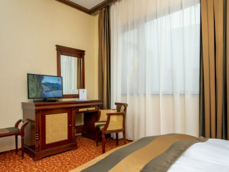 Fiecare camera este dotata cu: birou si TV LCD, mini frigider, dus si produse cosmetice de calitate, halate si papuci, uscator de par.