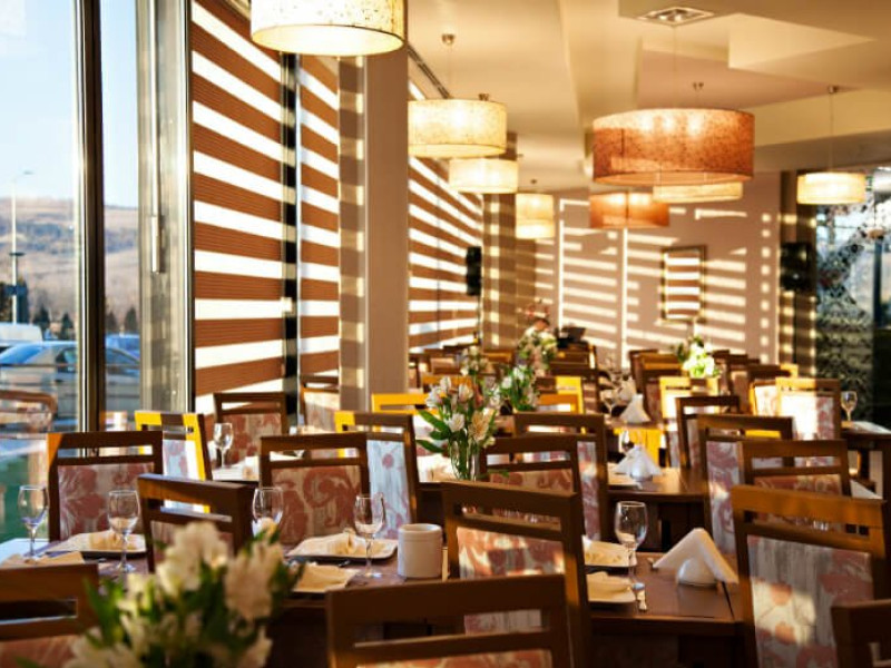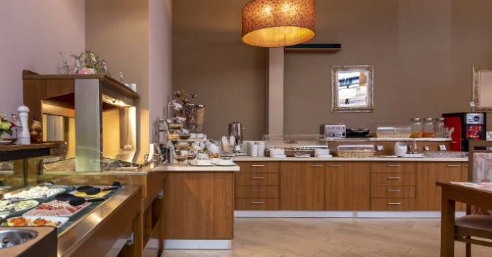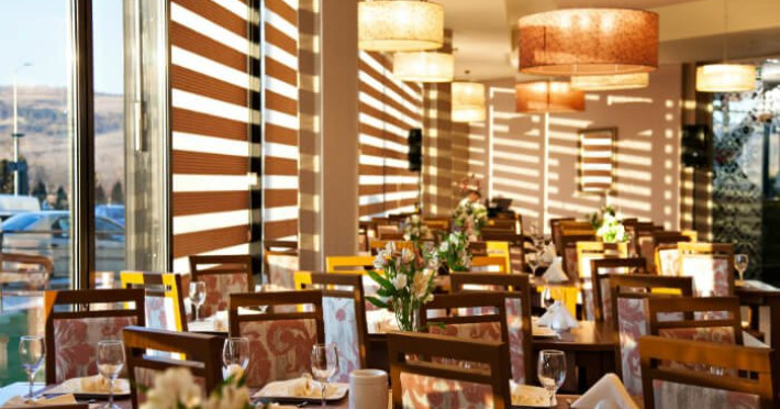 Micul dejun este inclus in tariful cazarii si este servit sub forma de bufet. Cina are loc intre orele 17:00 si 22:00, iar preparatele se aleg din meniul a la carte, disponibil si in camere prin scanarea unui cod QR.