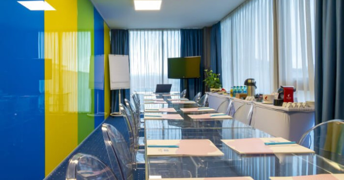 Sala de conferinte Color Room are o capacitate de 20 locuri, fiind ideala pentru evenimente intime, sedinte de coaching, training-uri si intalniri in cadru restrans.