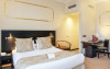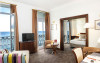 The hotel Hotel West End is located next to a public beach. The old town is around 2,5 km away. There is a 24h shuttle service between the hotel and the airport (for a fee) 24h a day. Near the beach there is a promenade where you can go for a stroll. The air-conditioned, GPS-verified hotel has a 24h reception, a lobby bar, Wi-Fi, internet access, a lift, a kiosk, parking spaces (limited and for a fee) as well as a TV lounge with satellite TV. Furthermore, you can relax outdoors on the terrace. You can store your valuables in the safe, and your luggage in the hotel`s storage room. For very young guests, kid`s chairs can be provided. There is also a laundry service available at an additional cost to customers as well as an ironing service. Ironing equipment can also be borrowed at the hotel. For your comfort, in addition to the concierge service the hotel page will ensure you are looked after. For conventions and other business meetings, the hotel offers a conference area with tables as well as a video projector. Dogs are the only pets allowed in the hotel (on request). For guests on their honeymoon, the hotel has special offers such as special honeymoon packages. Because of its environmentally friendly management, the hotel Hotel West End has been awarded a sustainability certificate. The hotel requires that all guests pay a deposit upon arrival. Euro/Master Card is accepted as means of payment. Due to its barrier-free facilities the hotel is also suitable for wheelchair users. Catering As catering services the hotel offers half board. Breakfast is offered American, continental or from the buffet. Enjoy your lunch à la carte. Dinner is served à la carte with starters and desserts. In the gastronomic area also gluten-free dishes are served. The drinks menu of the hotel includes water, soft drinks, coffee and tea, beer and wine. Distances- Airport: approximately at 5 km