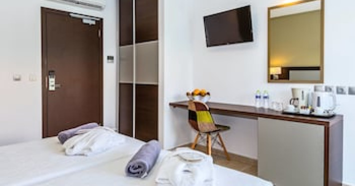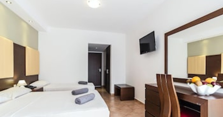 Near Laganas Beach. When you a stay at White Olive Premium Laganas in Zakynthos, youll be near the beach, just steps from National Marine Park of Zakynthos and Laganas Beach. This 4-star hotel is 0.7 mi (1.2 km) from Kalamaki Beach and 4.9 mi (7.9 km) from Zakynthos Ferry Terminal. Make yourself at home in one of the 137 air-conditioned rooms featuring refrigerators and LED televisions. Rooms have private balconies. Complimentary wireless Internet access keeps you connected, and satellite programming is available for your entertainment. Private bathrooms with showers feature complimentary toiletries and hair dryers. This hotel is all inclusive. Rates include meals and beverages at onsite dining establishments. Charges may be applied for dining at some restaurants, special dinners and dishes, some beverages, and other amenities. Enjoy a satisfying meal at White Olive Restaurant serving guests of White Olive Premium Laganas. Wrap up your day with a drink at the bar/lounge. A complimentary buffet breakfast is included. Take in the views from a rooftop terrace.Datorita dinamicitatii domeniului disponibilitatea ofertelor se modifica de la un moment la altul. De aceea ofertele sunt valabile in limita locurilor disponibile. Agentia nu este responsabila pentru eventualele neconcordante care pot aparea intre informatiile privind tarifele si alte detalii din site si informatiile primite in agentie. In aceste cazuri vor avea prioritate, intotdeauna, informatiile primite in agentie.